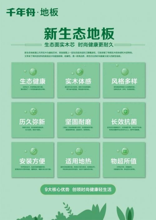 早在2002年党的十七大报告中就明确提出了实现全面建设小康社会奋斗目标的新要求,其中,“建设生态文明,基本形成节约能源资源和保护生态环境的产业结构、增长方式、消费模式”,更是重中之重。千年舟深耕板材产品研发23年,基于板材行业及90后新兴消费市场的变化,根据23年的生态板材生产技术于经验,2022年首次将生态技术应用于地板,“新生态地板”正式诞生:这是一款致力于打造兼具实木体感和生态技术特性的时尚健康又耐用的新品类地板,服务于新时代年轻人生态家居环境的生活需要,它又是怎样当之无愧的呢?