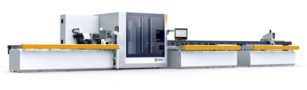 磁悬浮智能激光锯铣生产线: 自动完成铝型材的锯切、铣削、贴标,是实现柔性化生产和提升精度的基石。