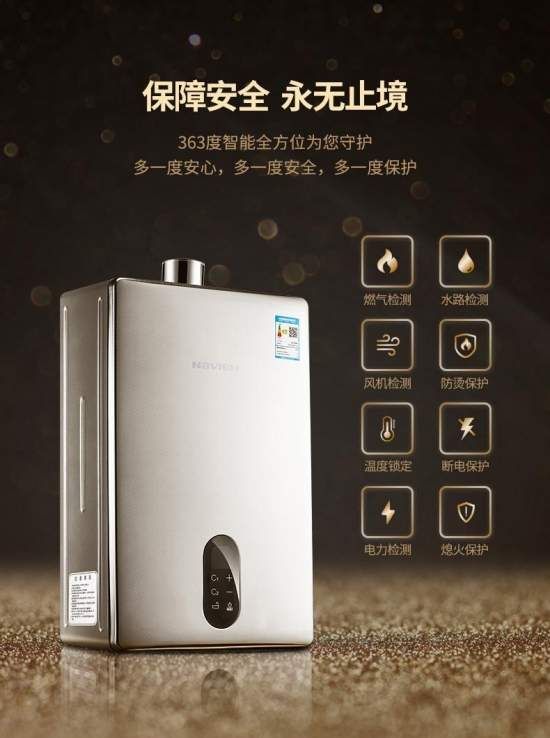 搭载APS专利人工智能防御系统,配备风压传感器,可实时感知室外风力,智能调节风机转速,抵抗12级台风,确保燃气充分稳定燃烧,防止熄火与CO产生,既保障安全,也为恒温提供坚实支撑。